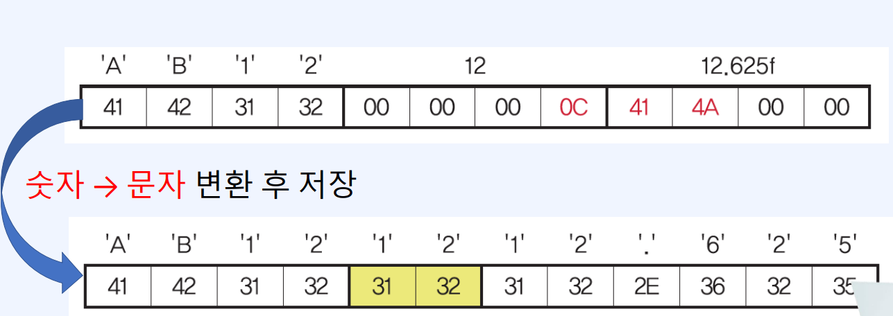 - 텍스트 파일은 숫자를 문자로 변환 후 쓴다.