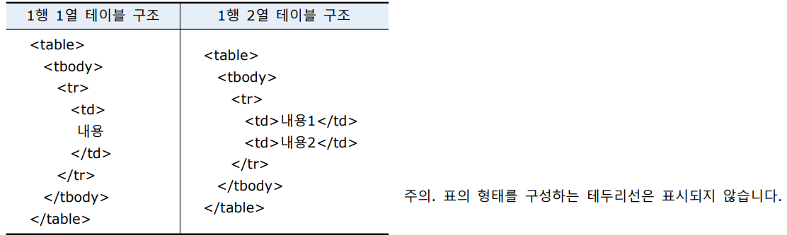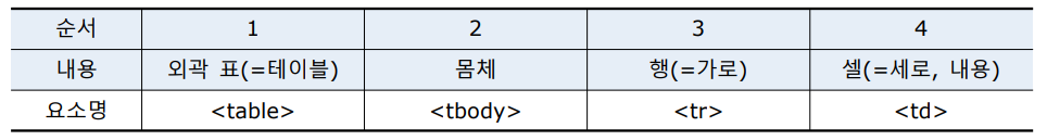 1. 표 만들기 요소 => table 요소