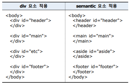 - div 요소를 너무 많이 사용하여 발생되는 혼동을 줄이기 위해 만든 요소입니다.