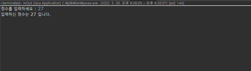 System.out.println("입력하신 정수는 "+ num + " 입니다.");