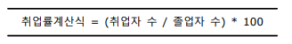 아래 표에 나와 있는 내용을 활용하여 취업률을 구하세요.