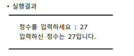 | 출력용 | String, 스트링 | "가나다". "27" | String 변수명 = "27"; |
