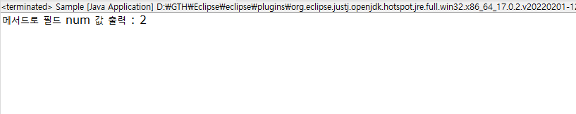 System.out.println("메서드로 필드 num 값 출력 : " + num);