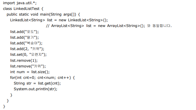 ex. LinkedList 클래스 사용예