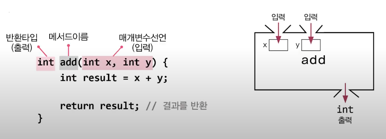 매개변수는 메서드가 작업을 수행하는 필요한 값들(입력)을 제공받기 위한 것