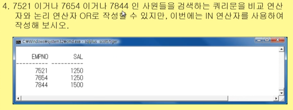 | 예 | SELECT * FROM EMP WHERE COMM = 300 OR COMM = 500 OR COMM = 1400; |