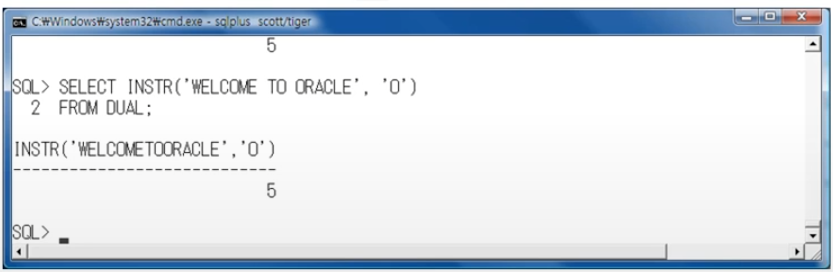 | 예 | SELECT INSTR('WELCOME TO ORACLE', 'O') FROM DUAL; |