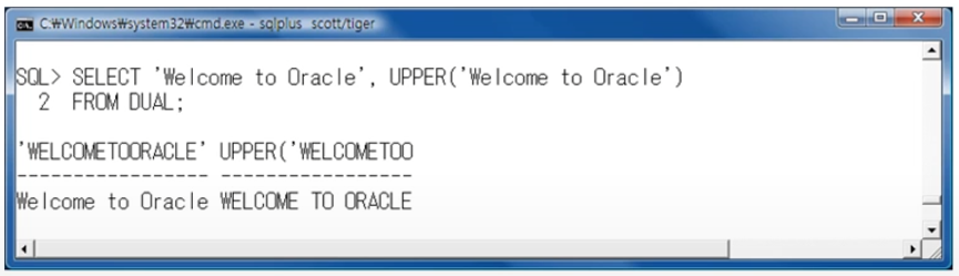 | 예 | SELECT 'Welcome to Oracle', UPPER('Welcome to Oracle') FROM DUAL; |