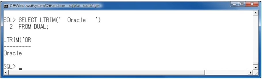 | 예 | SELECT RTRIM(' Oracle ') -- 왼쪽공백은 제거 안함. FROM DUAL; |