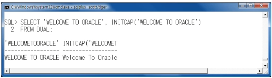 | 예 | SELECT 'WELCOME TO ORACLE', INITCAP('WELCOME TO ORACLE') FROM DUAL; |