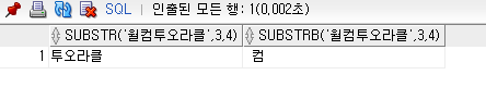 | 형식 | SUBSTR(대상, 시작위치, 추출할 개수) |