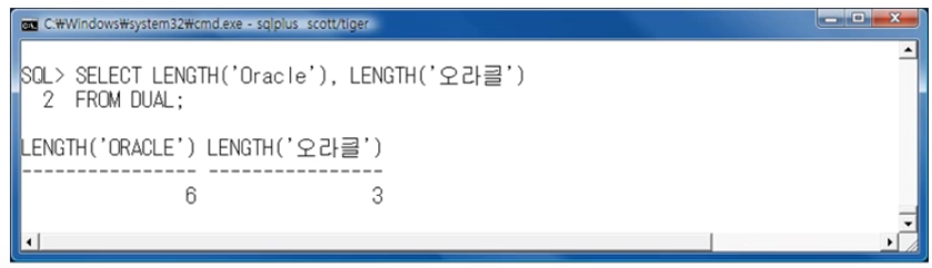 | 예 | SELECT LENGTH('Oracle'), LENGTH('오라클') FROM DUAL; |