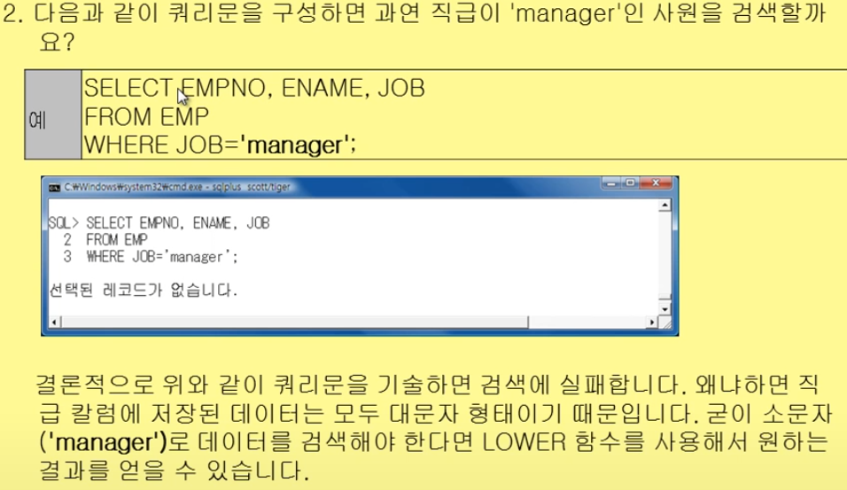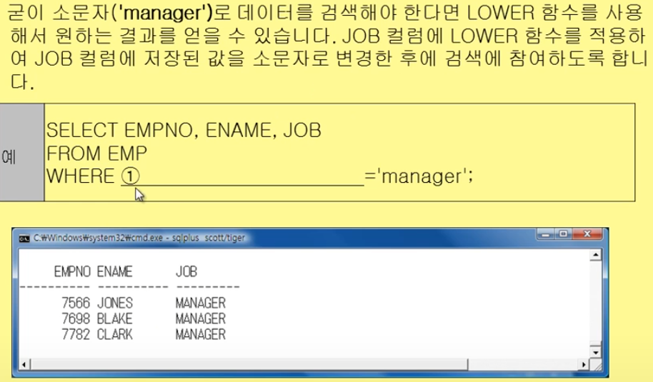 | 예 | SELECT 'Welcome to Oracle', LOWER('Welcome to Oracle') FROM DUAL; |