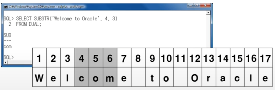 SELECT SUBSTR('월컴투오라클', 3, 4),
