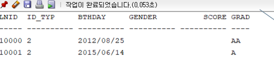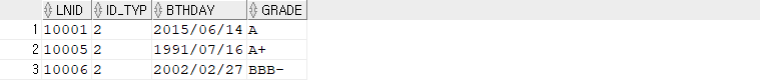 WHERE grade NOT IN ('AA+','AA','AA-') ; -- 포함되지 않는것