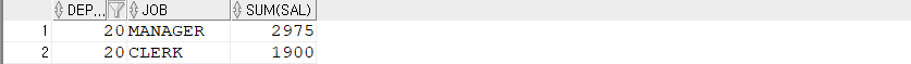 -- 그룹한 DEPTNO 컬럼의 SUM(SAL) 합이 9000보다 큰거.'Database > OracleDB' 카테고리의 다른 글