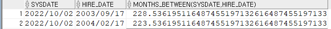 SELECT AVG(HIREDATE) -- ERROR 날짜로 평균을 구할 수 있어?