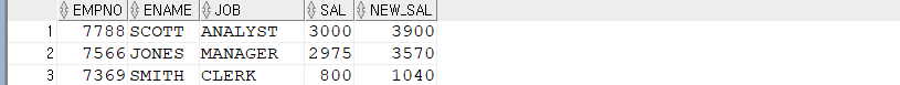 -- 이 만큼을 NEW_SAL이라고 별칭을 줌.