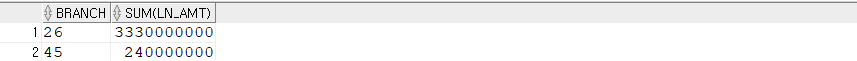 SELECT BRANCH, PROD_CD, SUM(LN_AMT)