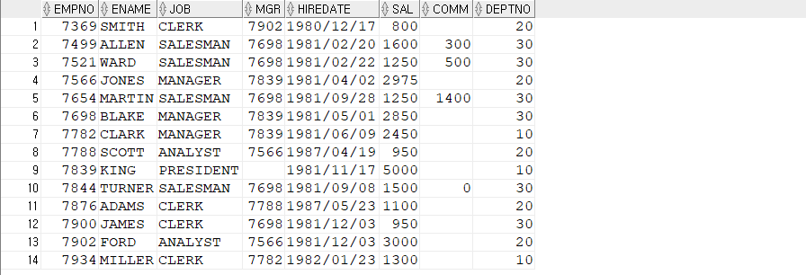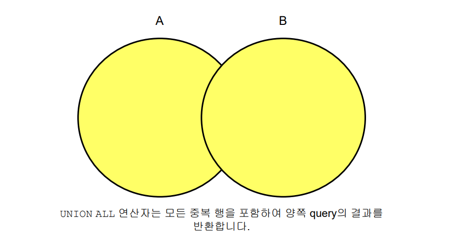 • union all 연산자는 모든 중복 행을 포함하여 양쪽 query의 결과를 반환합니다.