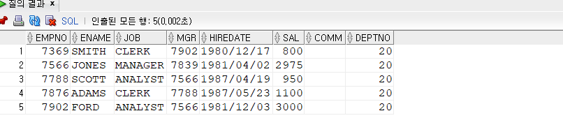 -- SYSDATE 함수를 사용하고, 검색결과는 아래와 다를 수 있음