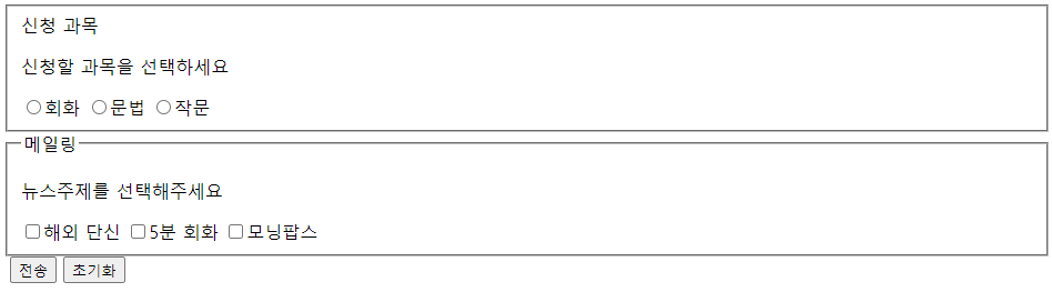 <label><input type="radio" name="subject" value="speaking">회화</label>