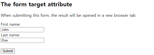 <input type="text" id="lname" name="lname" value="Doe"><br><br>