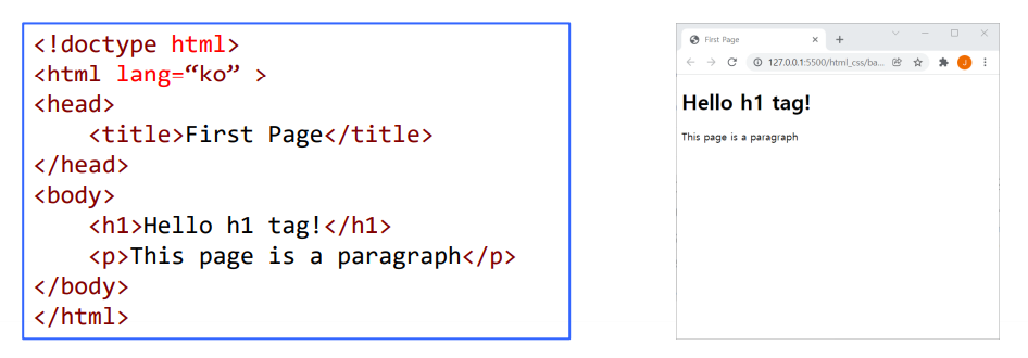 • 페이지 구조 : element로 구성되며, tag로 나타낸다.